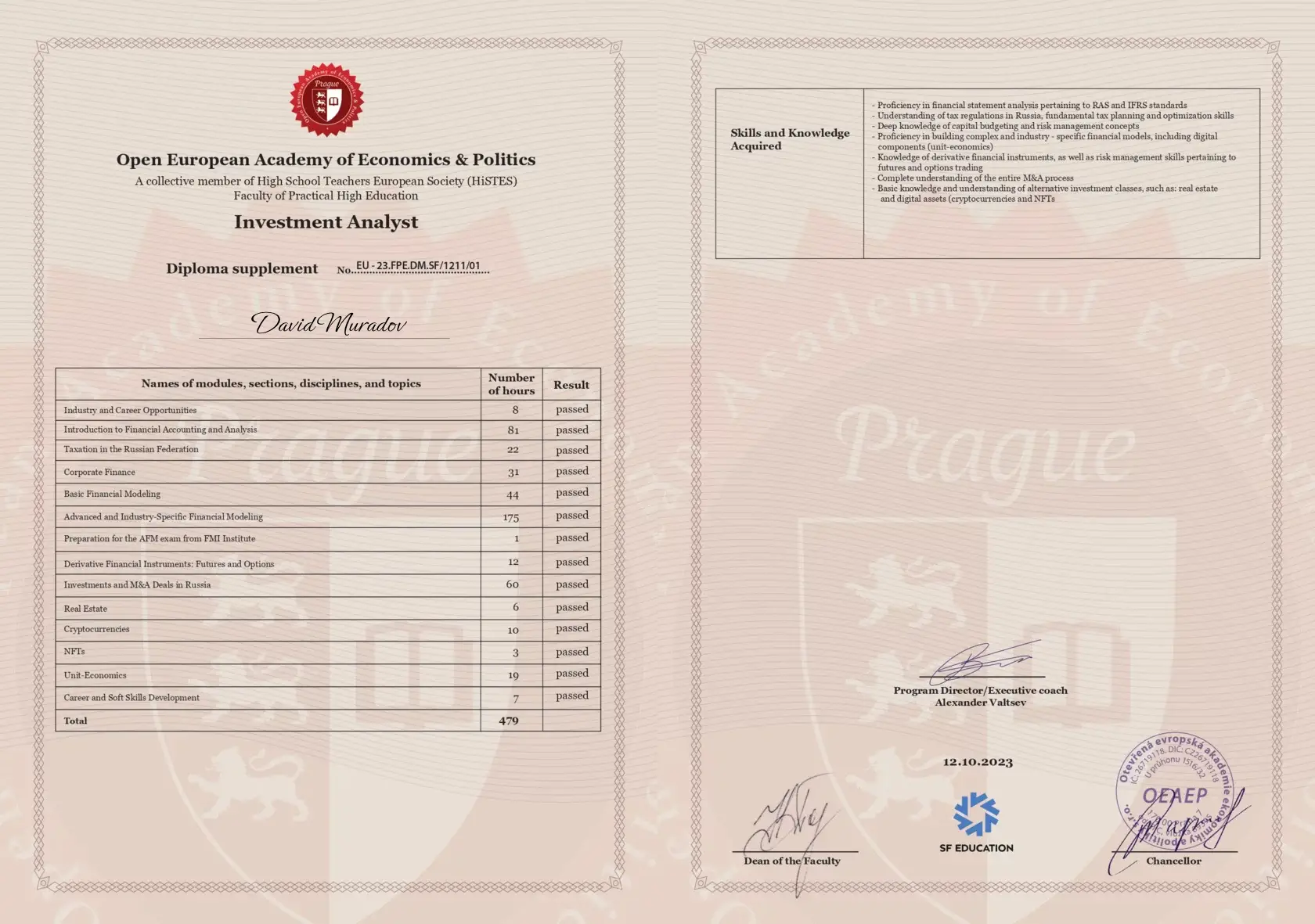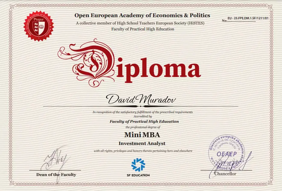 - Получил международный диплом совместно с Европейской Ассоциацией HISTES